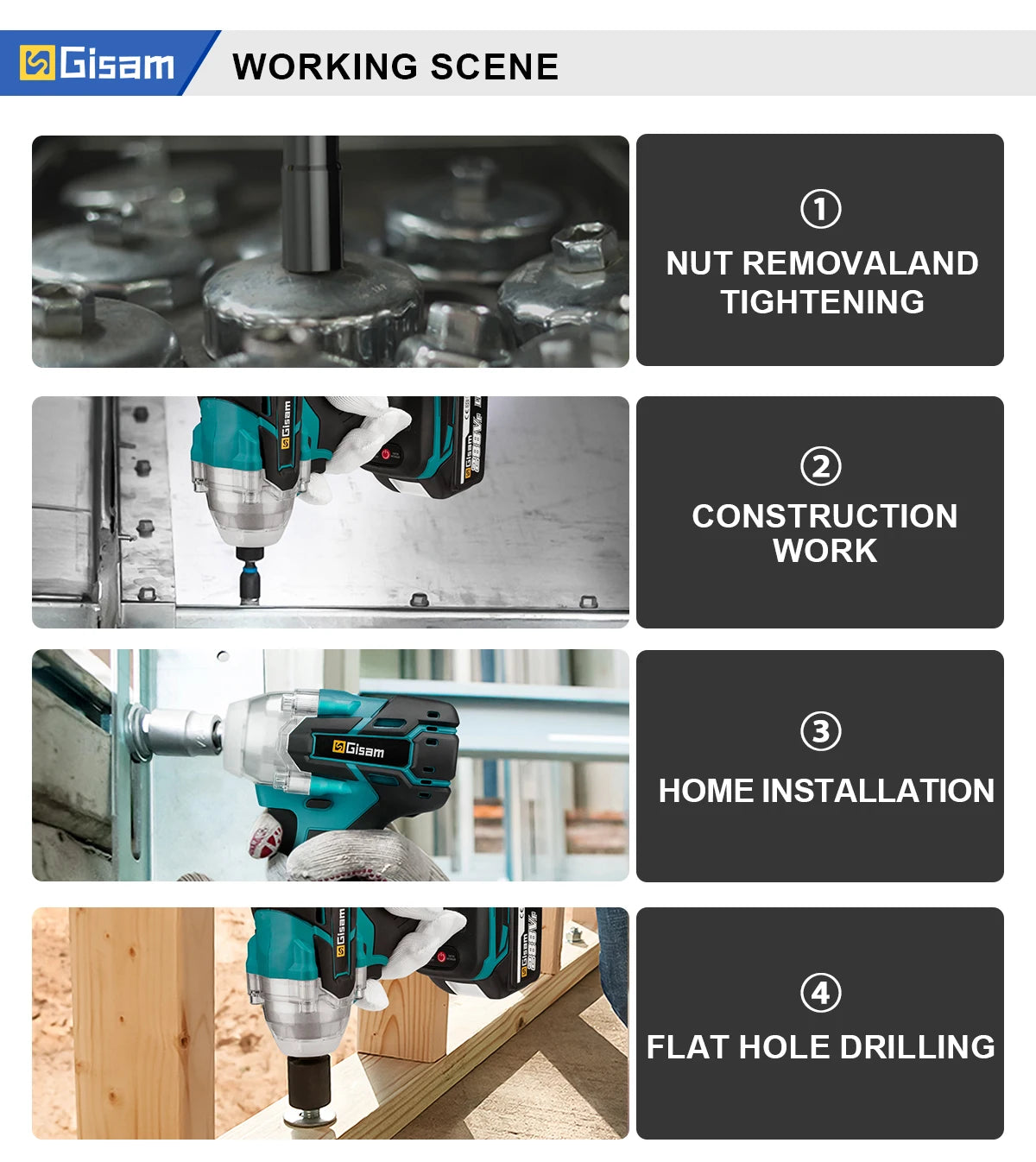 The Gisam 520N.M Brushless Electric Impact Wrench is a powerful and versatile tool that is perfect for any home DIY project. With its 1/2 inch size, it is compatible with Makita 18V batteries, making it a convenient addition to your power tool collection. This impact wrench is designed with a brushless motor, ensuring a longer lifespan and more efficient performance. It has a maximum torque of 520N.M, making it capable of handling even the toughest jobs. The sleek and compact design of this wrench makes it easy to handle and maneuver, while the high-quality materials used in its construction ensure durability and reliability. Whether you're a professional or a DIY enthusiast, the Gisam 520N.M Brushless Electric Impact Wrench is a must-have for all your power tool needs.