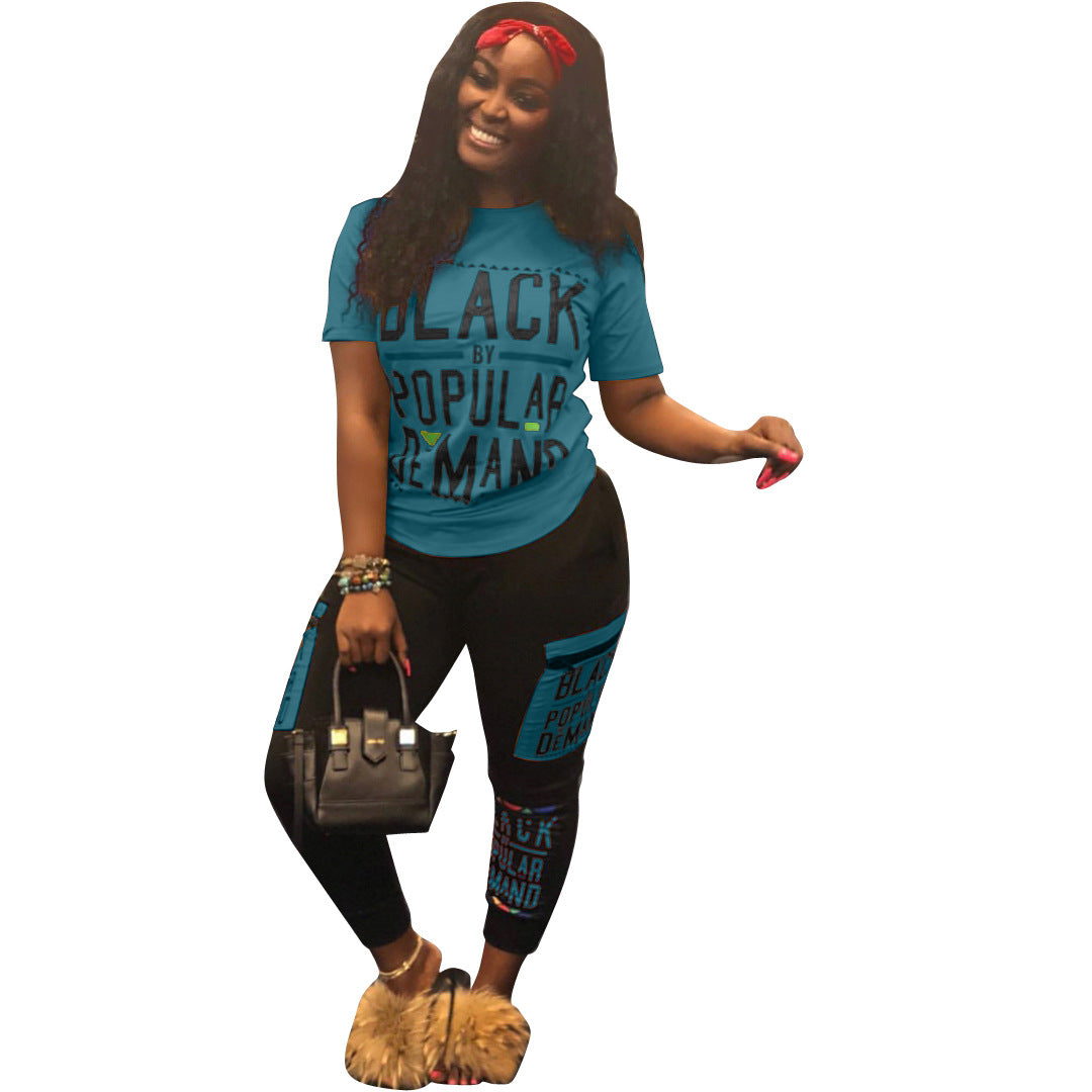 Women's Fashion Casual Letter Printed Pants Suit