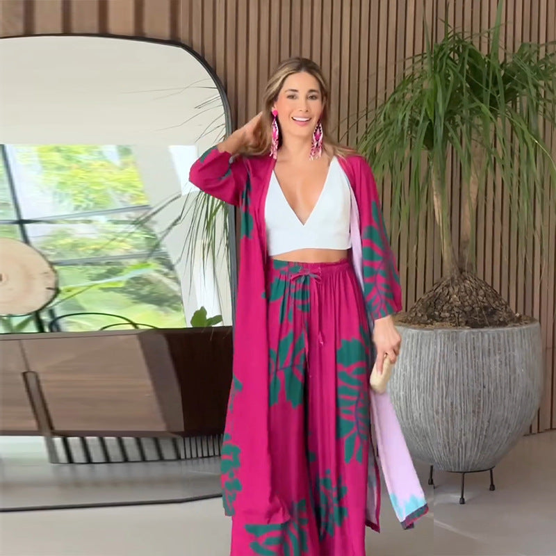 Women's Fashion Casual Printing Long Shirt Trousers Suit
