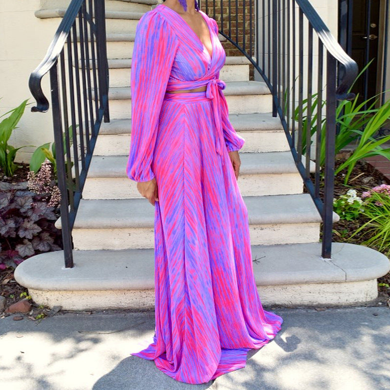The long skirt adds a touch of elegance to the outfit, making it suitable for both casual and formal occasions. The printing and dyeing process gives the suit a unique and eye-catching design, making you stand out from the crowd.