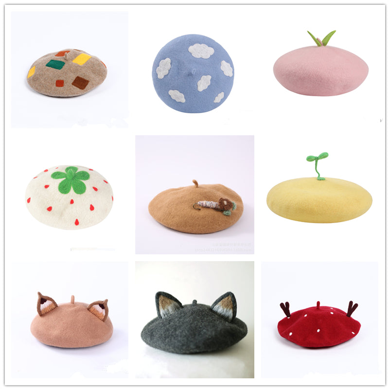 Boina creativa de fieltro de lana pura con forma de hongo de dibujos animados