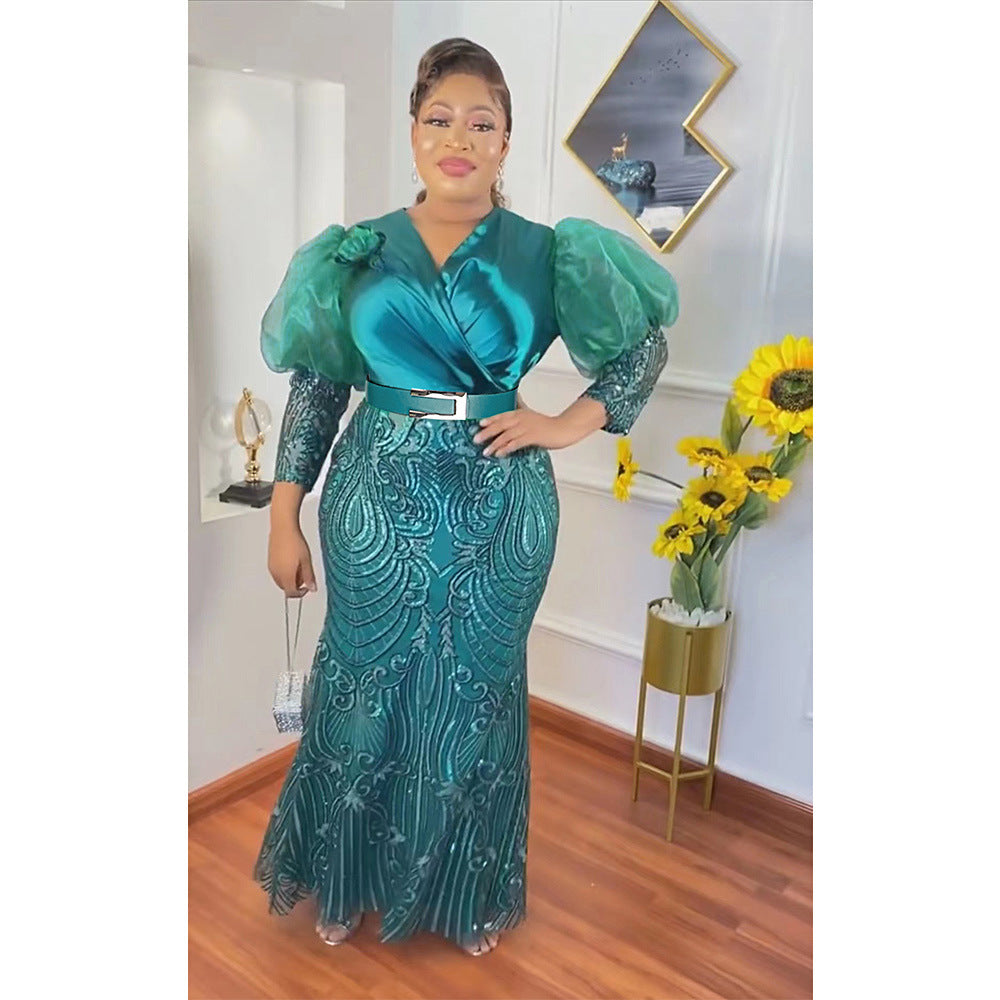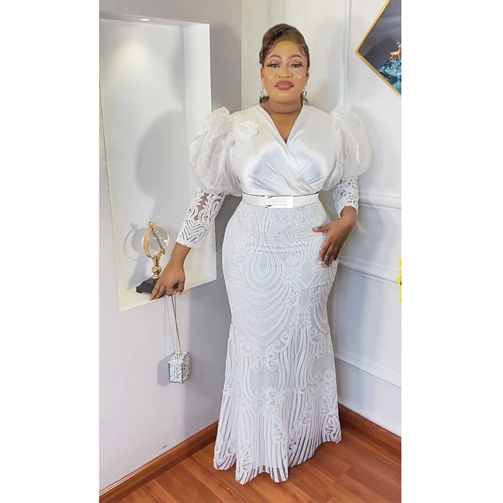 Vestido largo de noche soluble en agua con hilo de industria pesada