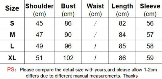 1. Las tallas asiáticas son de 1 a 2 tallas más pequeñas que las europeas y americanas. Elige la talla más grande si tu talla está entre dos tallas. Por favor, permite diferencias de 2 a 3 cm debido a la medición manual. 2. Consulta la tabla de tallas cuidadosamente antes de comprar el artículo. Si no sabes cómo elegir la talla, ponte en contacto con nuestro servicio de atención al cliente. 3. Como sabes, las distintas computadoras muestran los colores de forma diferente, el color del artículo real puede variar ligeramente de las siguientes imágenes.