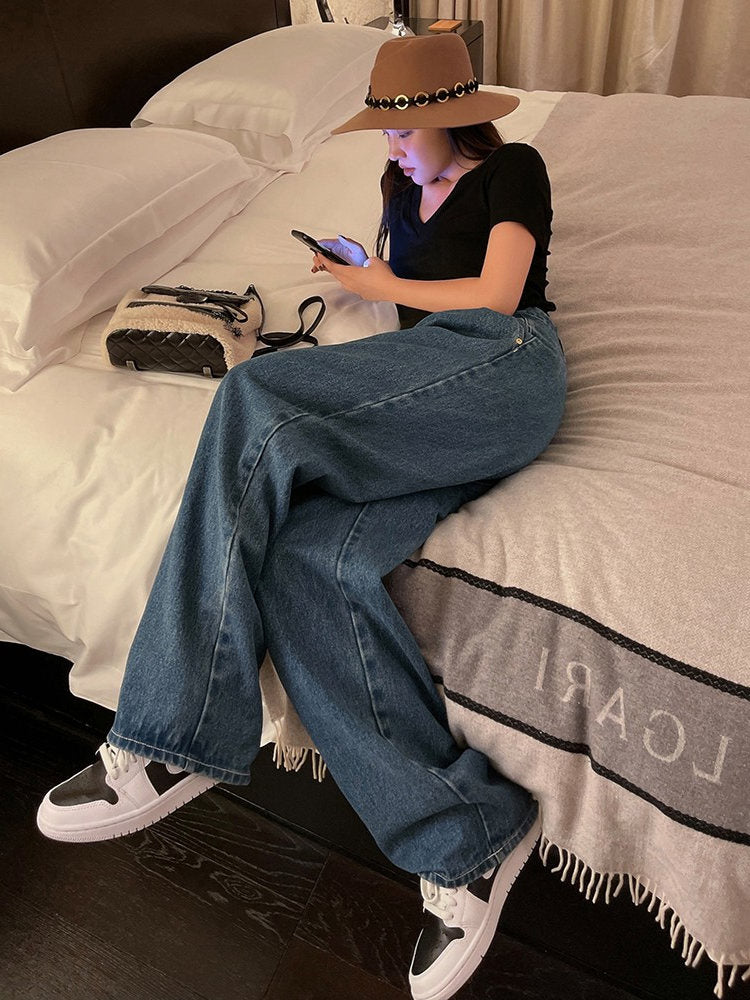 Pantalones vaqueros vintage de pierna ancha y cintura alta para primavera y otoño