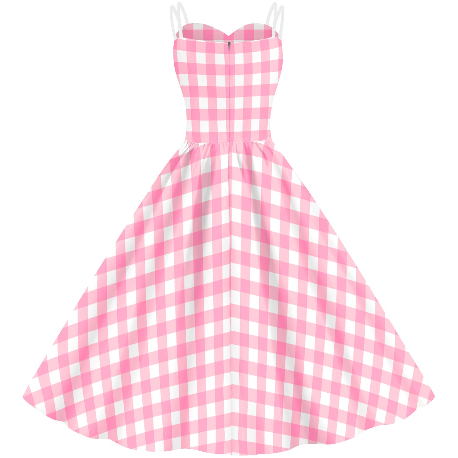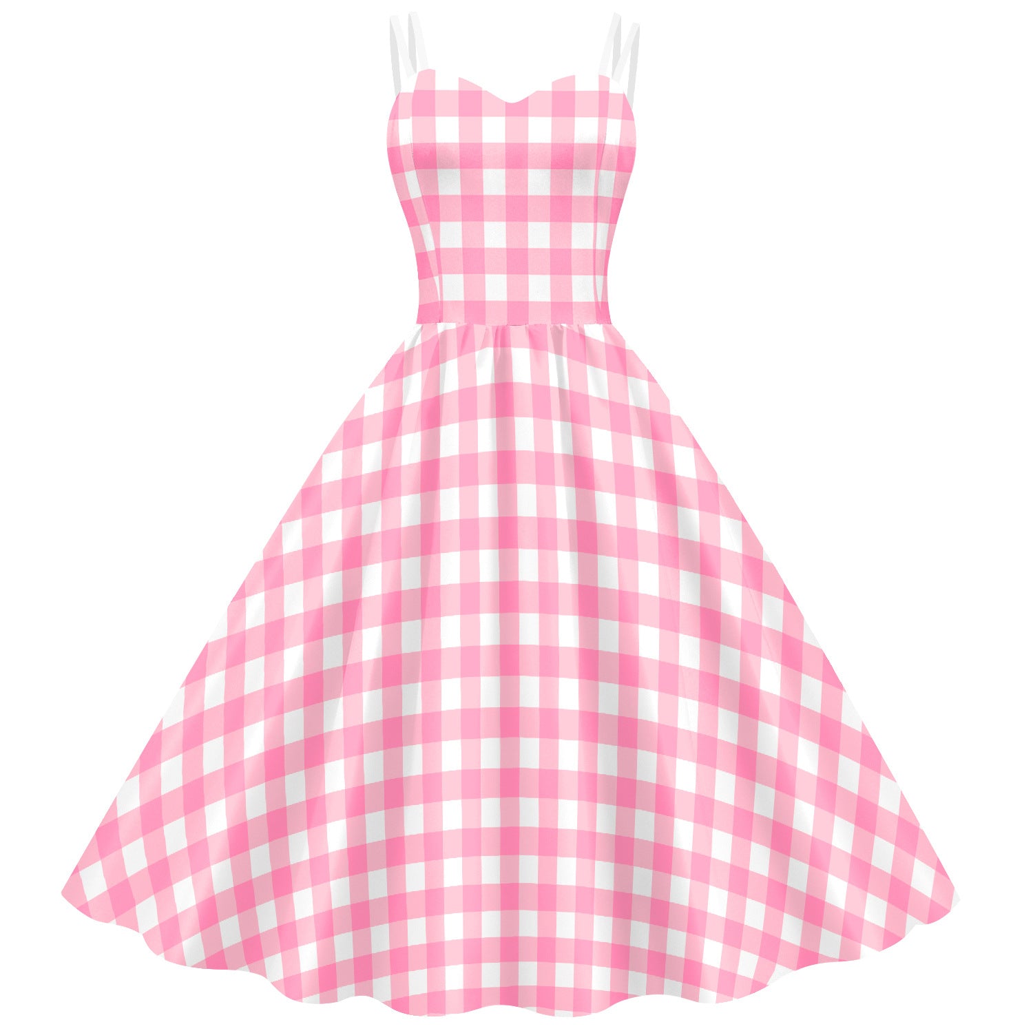 Vestido de cuadros rosa con estampado digital de Barbie para mujer