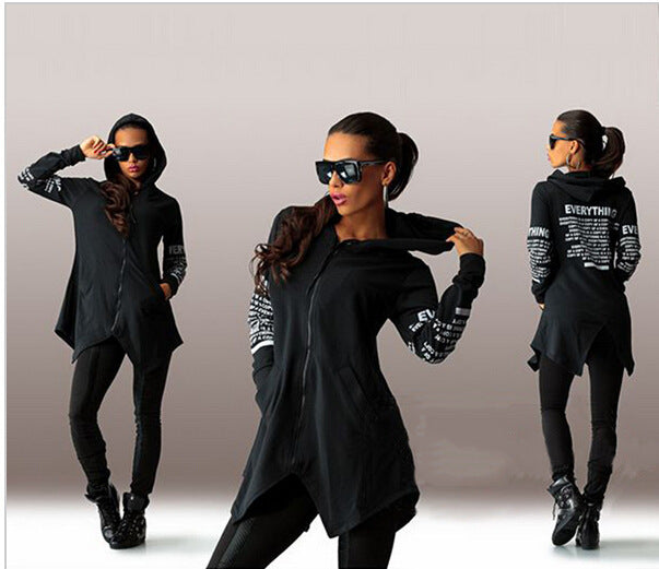 Suéter con capucha y cremallera con estampado de letras de grafiti informal a la moda para mujer