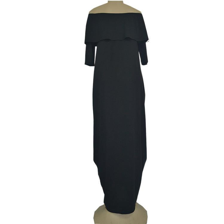 Vestido de mujer con mangas largas y hombros descubiertos y volantes