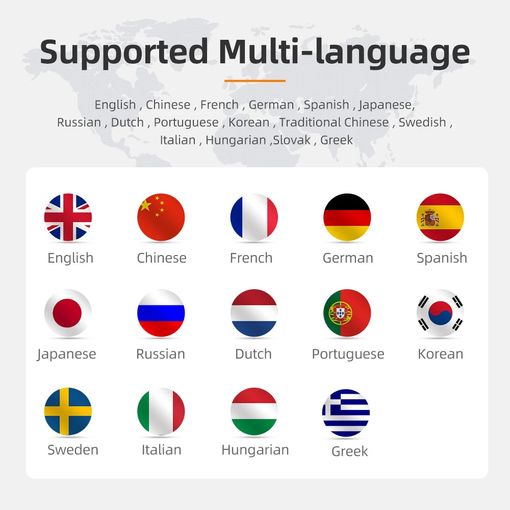 This sleek and stylish tool is designed to be user-friendly, with multiple language options including Dutch, English, French, German, Hungarian, Italian, Japanese, Korean, Portuguese, Russian, Spanish, and Swedish. Its compact size and Bluetooth connectivity make it easy to use on the go.
