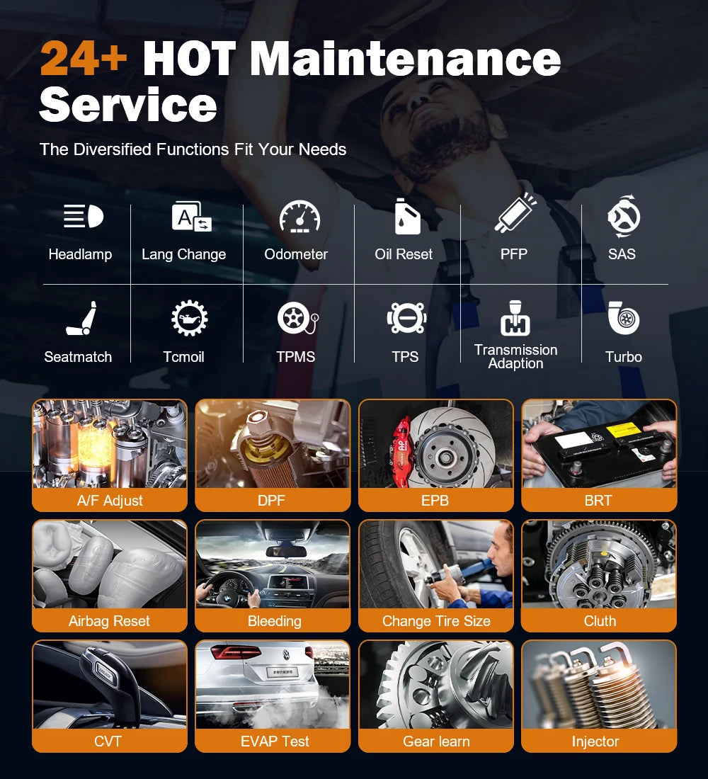 But that's not all, the FOXWELL GT60 also offers TPS, TPMS, injector coding, gear learning, A/F adjustment, seat matching, PFP, clutch adaptation, ABS bleeding, window and door control, turbo control, and headlamp control. With its bi-directional control test, you can easily diagnose and fix any issues with your car's systems.