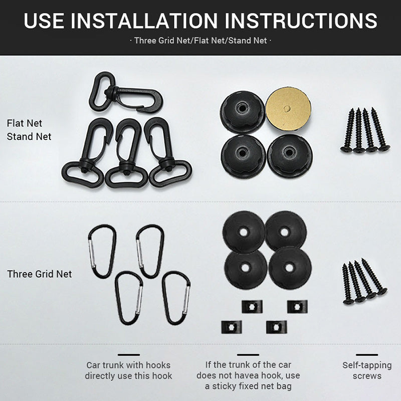 Introducing our Three-Column Luggage Net, the perfect solution for organizing your car's trunk and keeping it looking sleek and stylish. Made from smooth and flexible nylon mesh, this net is not only strong and durable, but also easy to install. With three different types to choose from, you can find the perfect fit for your car. Say goodbye to cluttered trunks and hello to a newer, more organized car. This net is designed to hold all your small items and storage boxes securely in place, making your travels hassle-free. It's suitable for all types of trunks and can be installed in any car, RV, bus, or coach. The middle net is made of high-quality nylon material, ensuring its strength and durability. Not only is this luggage net functional, but it also adds a touch of style to your car's interior. Its sleek and simple design will complement any vehicle. Plus, it's highly resistant to wear and tear, ensuring a long lifespan. The net is made with high tenacity and good flexibility, making it superior to ordinary nets. Please note that the pictures are for reference only and the actual product may vary slightly. The installation method is hook type, making it easy to install and remove as needed. Made from polyester, this net is strong and reliable. The packing list includes one storage mesh bag, making it a complete and convenient solution for your trunk organization needs. Upgrade your car's trunk with our Three-Column Luggage Net today!