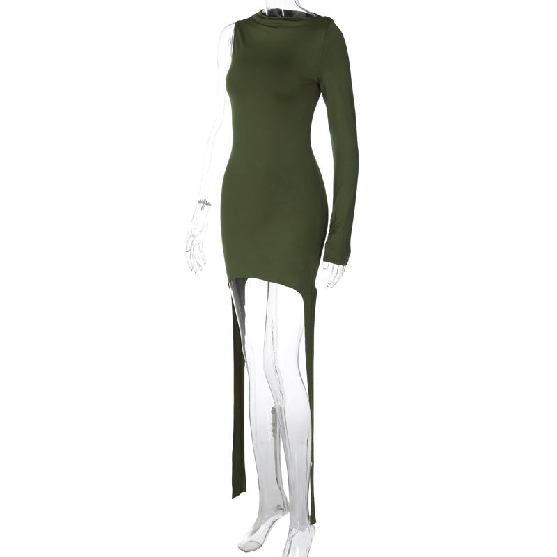 Fashion Solid Color Long Sleeve Slim-fit Sheath Dress For Women