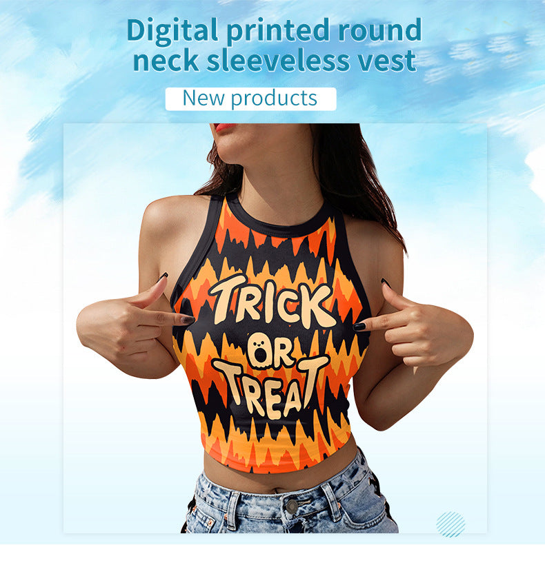 European And American Spicy Girls Digital Printing Outerwear Short Sleeveless T-shirt