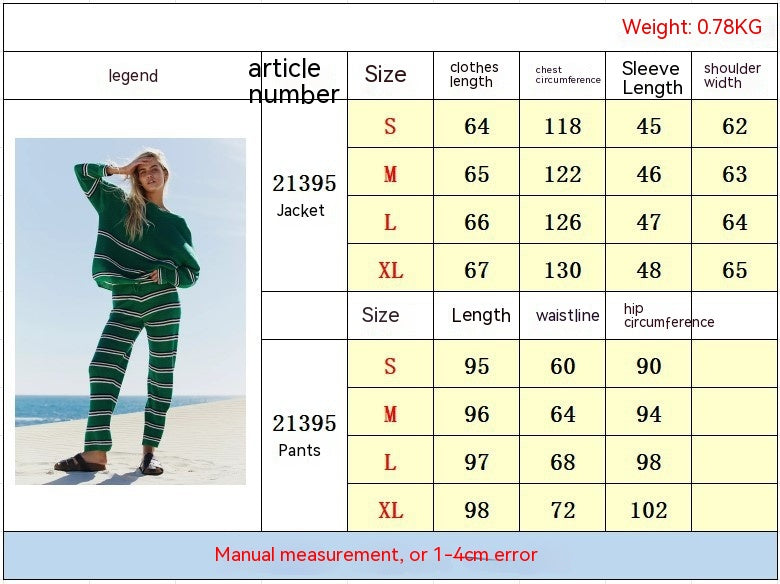 European And American Temperament Crew Neck Long Sleeve Striped Two-piece Outfit Set