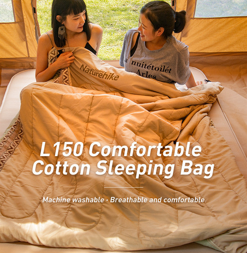 The L150 exquisite sleeping bag is made with Chun Yafang fabric, washed cotton lining, and hollow cotton filling, ensuring durability and softness. It measures 190X75cm when expanded and can be easily stored in a compact size of φ15X38cm, making it convenient to carry on your travels.