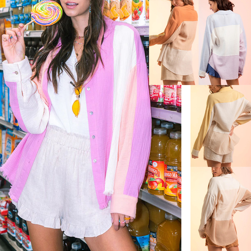 Women's Fashion Pocket Single Breasted Color Block Shirt