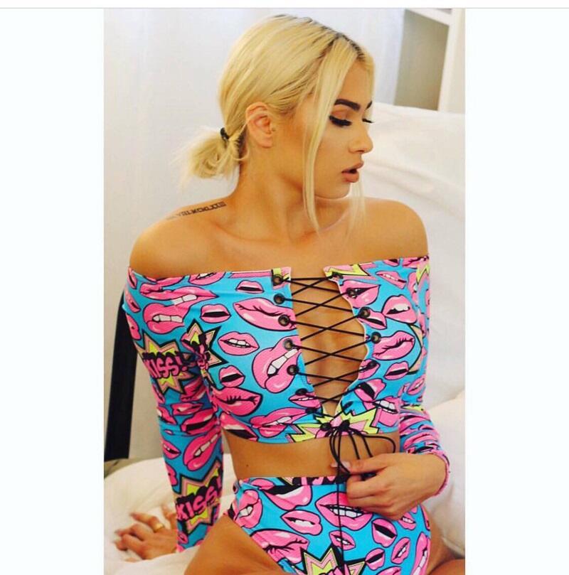Women's Fashion Printed Split String Lace-up Swimsuit