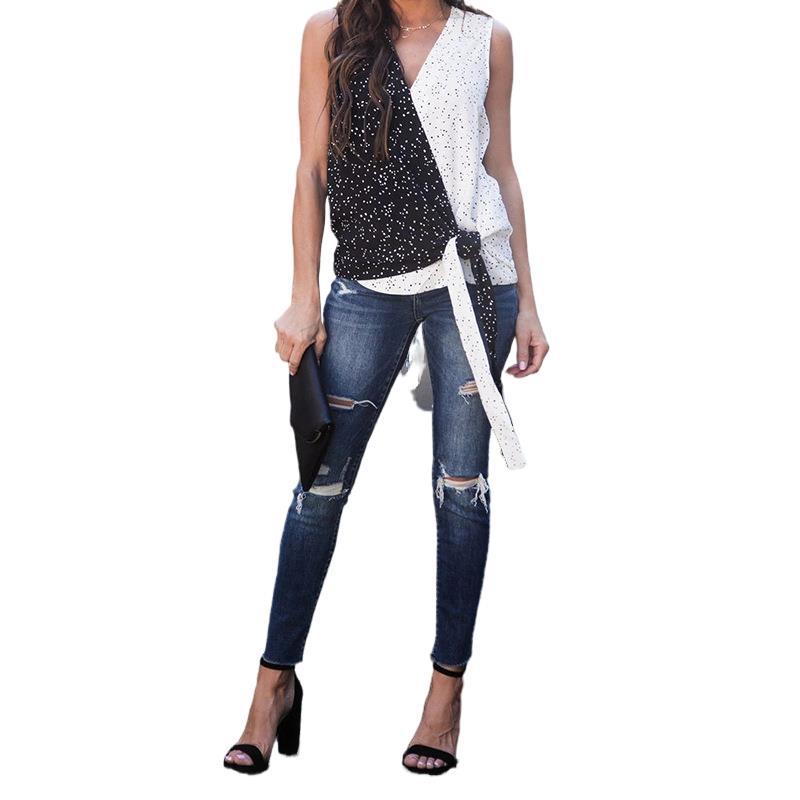 Stay stylish and comfortable with this sleeveless top in a classic black color. Made from high-quality polyester fiber, this top is soft, lightweight, and perfect for any occasion. The loose fit and pullover style make it easy to wear and pair with any bottom. The top features a unique contrast color design, adding a touch of elegance to your outfit.